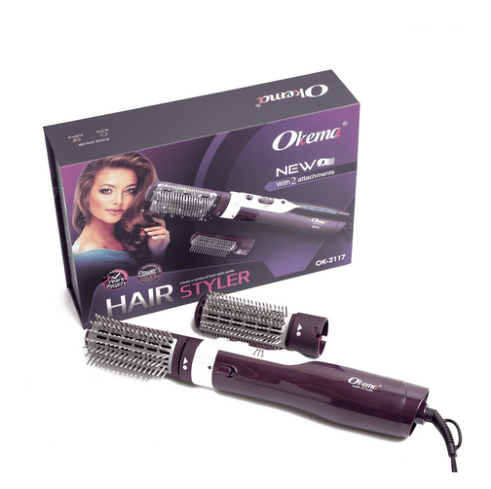 تم تصميم طقم تصفيف الشعر OK-2117 من اوكيما ليعمل على تسريح الشعر وتنعيمه بطريقة احترافية ويمكنك من لف وتمويج الشعر بشكل متألق بتصميم أنيق مع مقبض مريح وسهل الاستخدام انه جهاز مثالي متكامل للحصول على شعر متألق يزيد من جمال إطلالتك