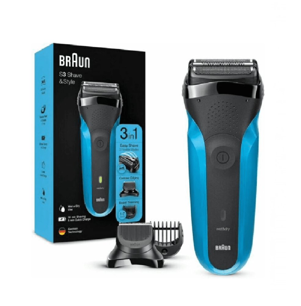 ماكينة حلاقة سيريس 3 من بروان 3 في 1 الكهربائية جاف و مبلل مزودة بأداة تشذيب دقيقة، اسود / ازرق - BT3010