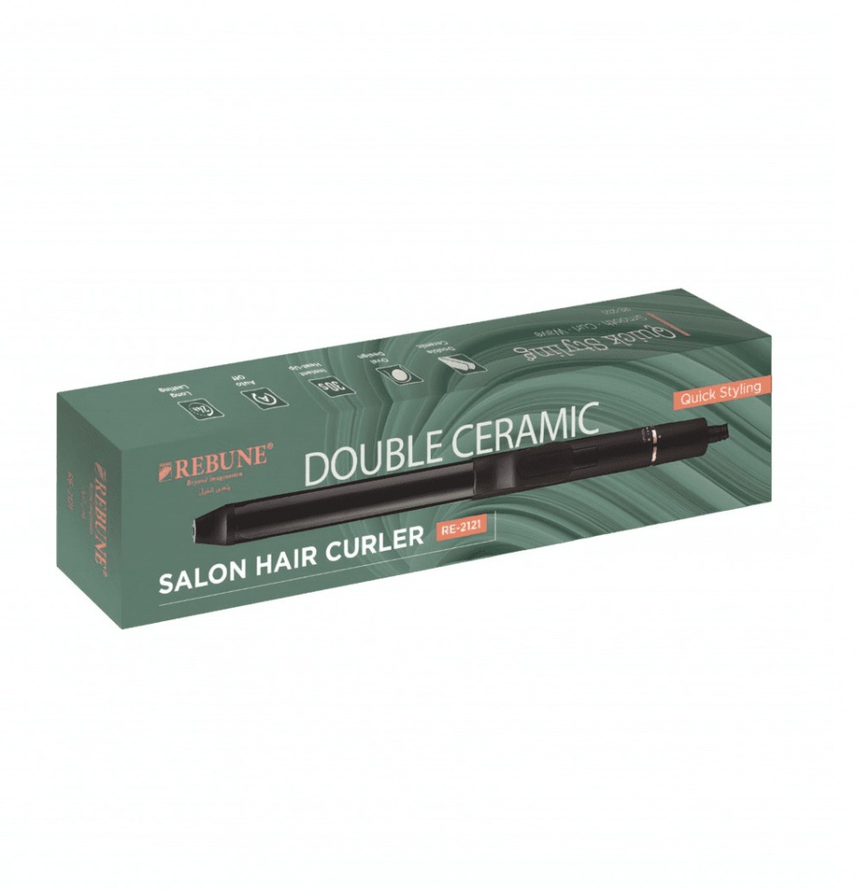 ريبون مكواة تجعيد الشعر الاحترافية من السيراميك المزدوج بشكل انيق لإداء احترافي لمظهر متناسق وجذاب ونتائج تصفيف سريع وناعم بتمويجات للشعر مرضية لك و لستايلك ويعطيك نفس المظهر الصالونات وانت في منزلك في وقت قصير وقياسي والجهاز بتقنية الاحماء الفوري عند التشغيل في وقت قياسي 30 ثانية بخاصية للامد الطويل مع الاغلاق التلقائي بعد 60 دقيقه بمفتاح دوار للتشغيل والتحكم في درجات LED الحرارة وشاشة عرض