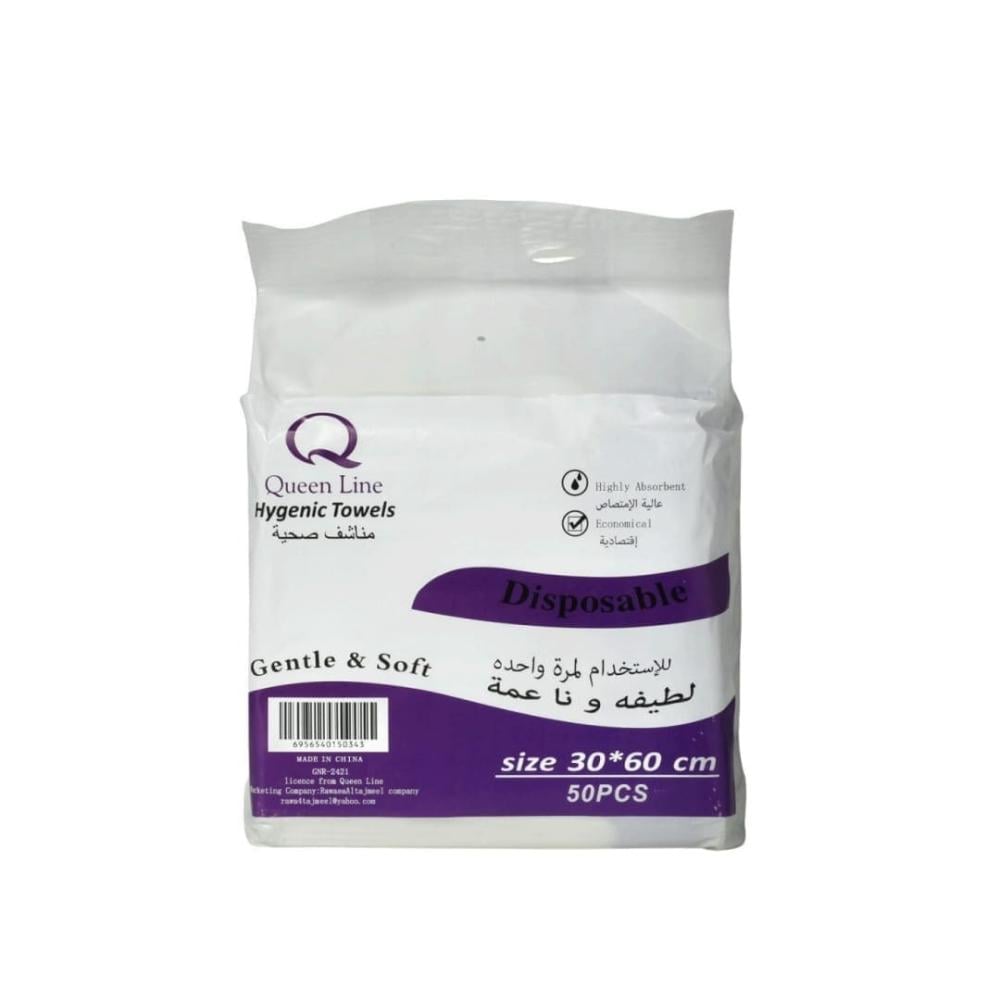 مناشف كوين لاين مقاس 60*30 شدة 50 قطعة للاستخدام مرة واحدة