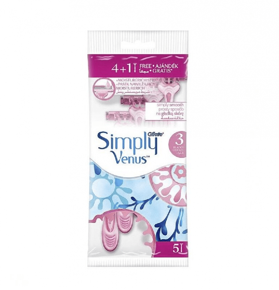 ماكينة حلاقة سيمبلي فينوس ثلاث شفرات للنساء 4+1 من جيليت 5 قطع :
