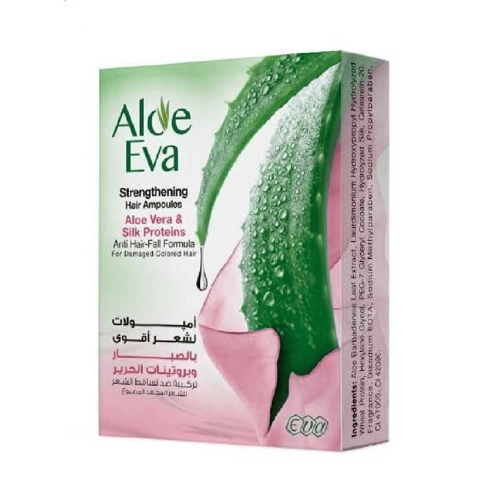 امبولات الشعر آلو إيڤا بالصبار وبروتينات الحرير (4 أمبولات) للشعر المجهد المصبوغ. تعمل على تقوية الشعر وتزيد من لمعانه وذلك من خلال إعادتها لبناء التالف منه وتغذيته بعمق وكثافة، 4 أمبولات للعبوة يحتوى كل منها على 15 مل.